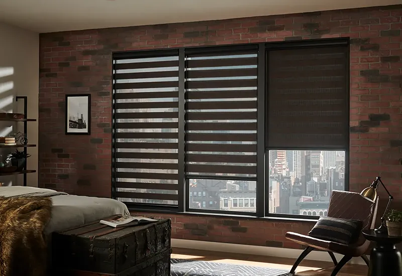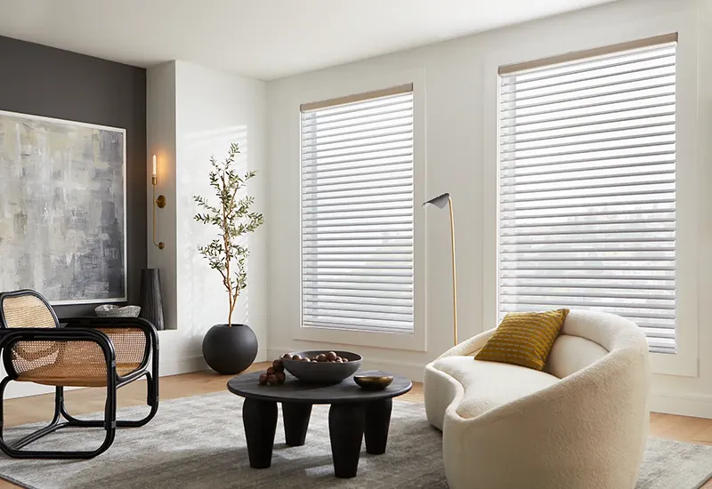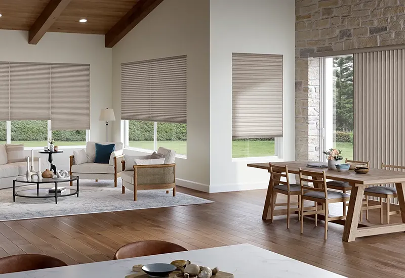 Blinds use adjustable slats to control light and privacy with precision. Offered in wood, faux wood, aluminum, and vinyl, they complement a variety of interiors while remaining easy to maintain.